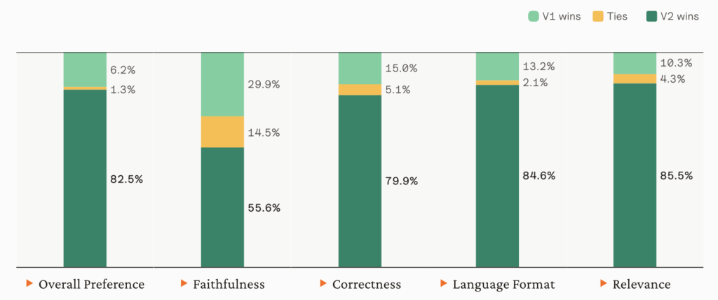 In side-by-side comparisons, Vals evaluators preferred Jus AI 2’s responses 82.5% of the time over the previous version.